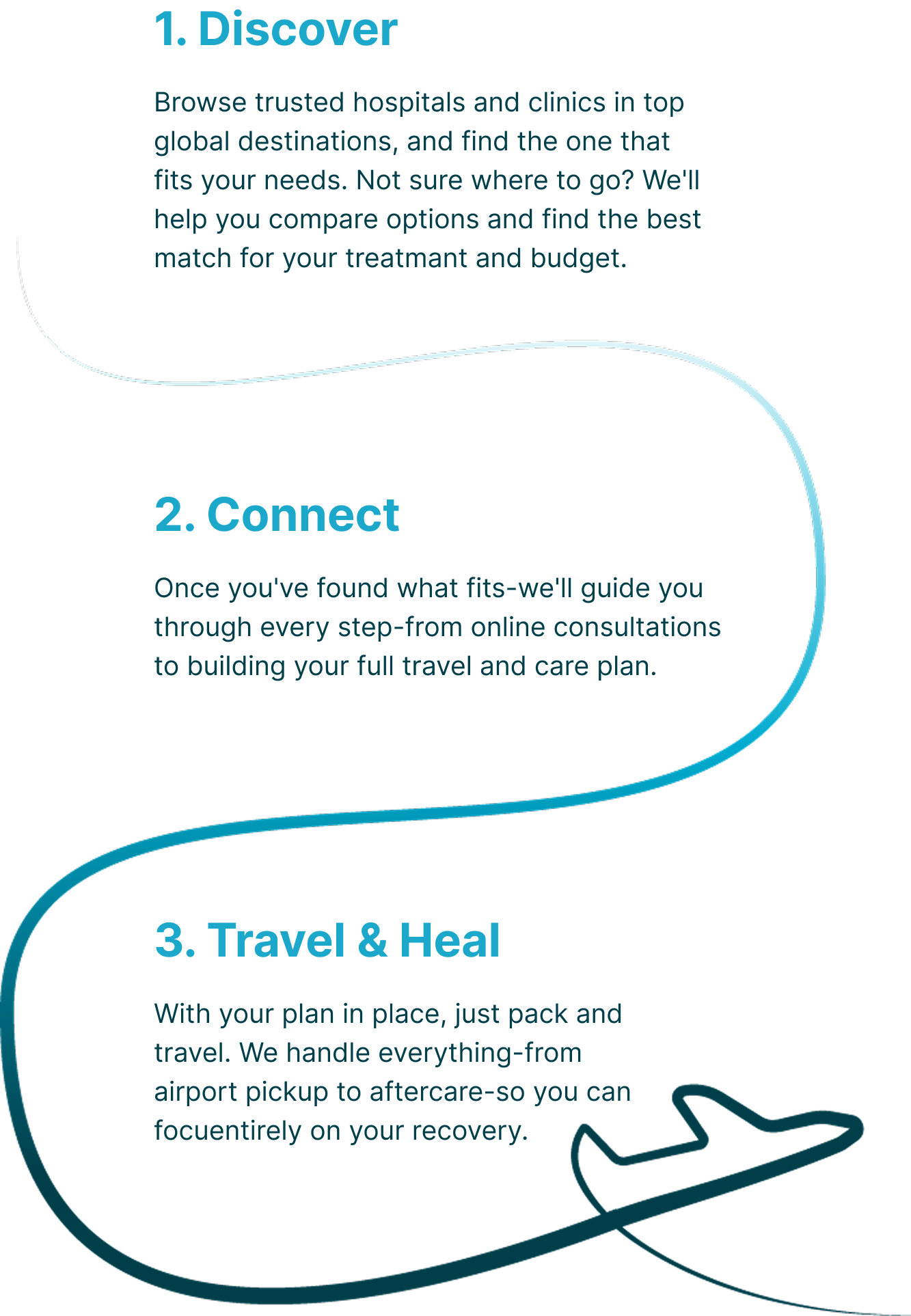 Once you submit the form, our concierge team will contact you for a free consultation. We’ll learn about your medical goals, present trusted options abroad, and assist with every detail.